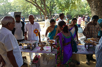 The Sanskrit word annadānam literally means the offering or sharing (dānam) of food (annam). In every ethnic and religious community across the Indian subcontinent, no festival or ceremony is complete without annadānam, or at least with the distribution of prasādam.